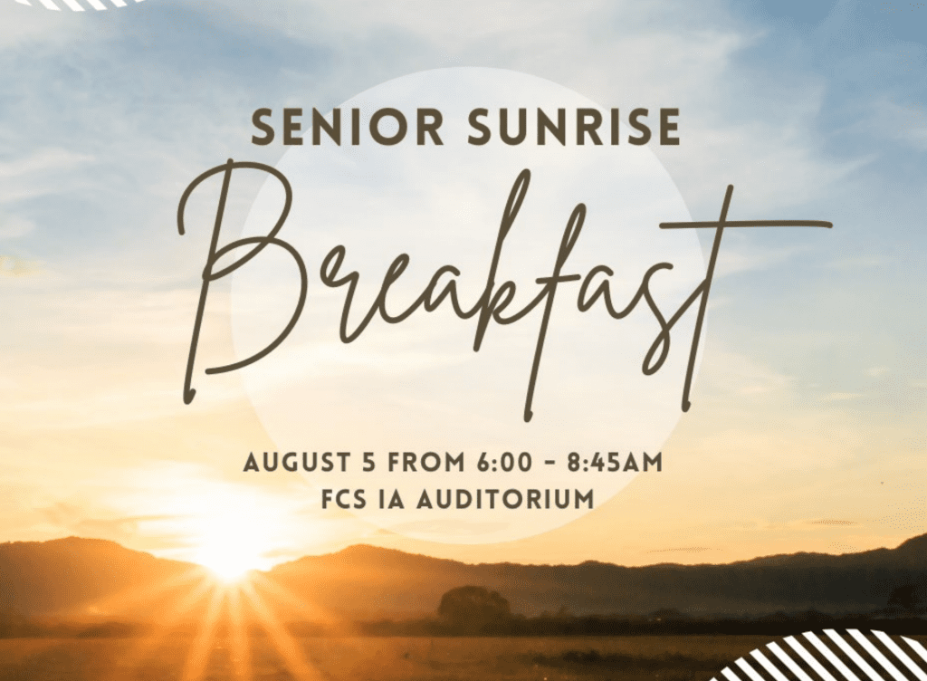 For IA’s graduating class of 2025, IA PTSO is sponsoring the Senior Sunrise Breakfast on the first day of school. All senior students are eligible to participate! It starts at 6:45 AM and runs until the beginning of the school day.