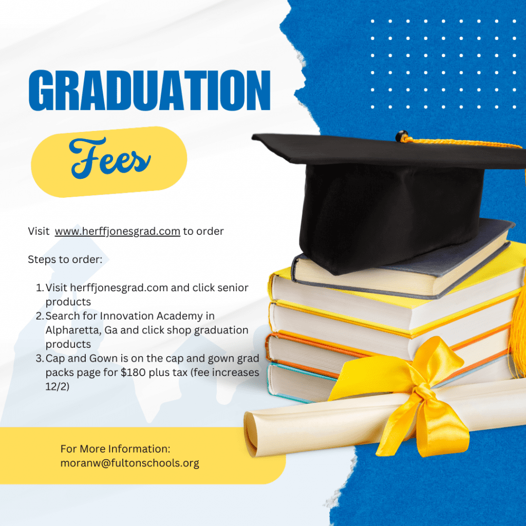 You can now order your cap and gown AND pay your graduation fees through www.herffjonesgrad.com. Questions? Contact Ms. Moran in the Counseling Office.