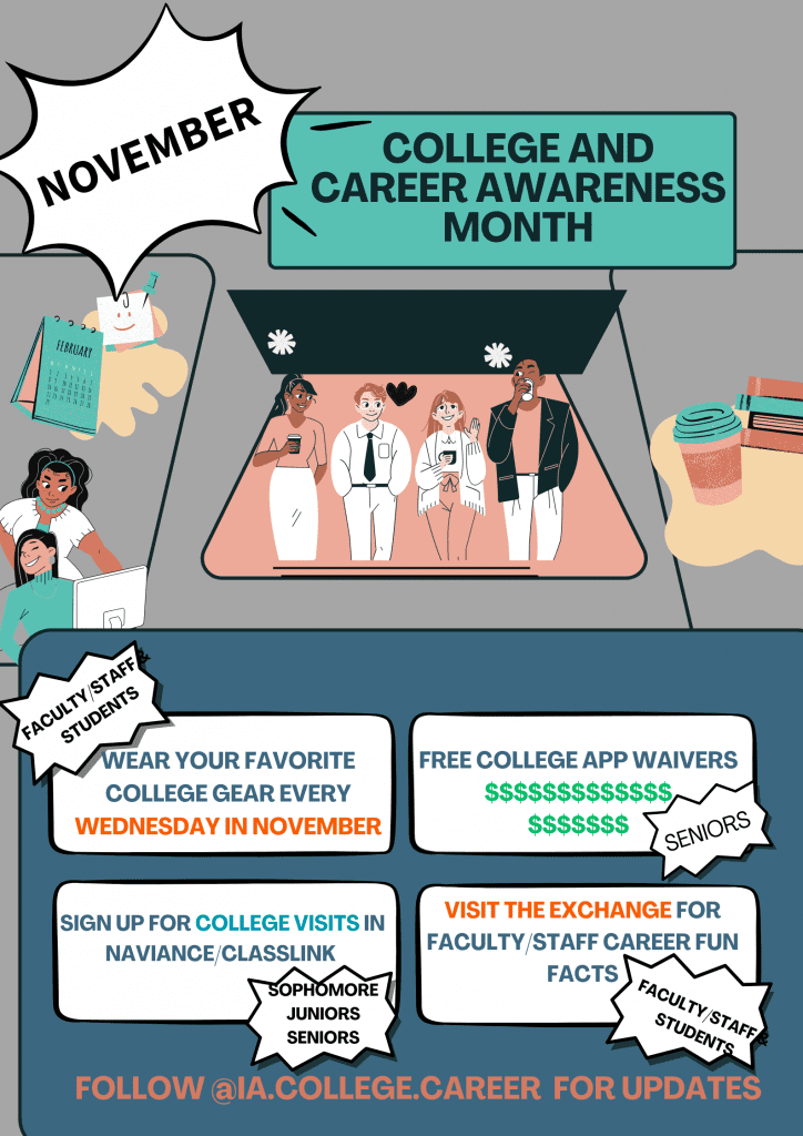 November is Apply to College/Career Awareness Month. Take a moment to check out some of the activities planned for the month!