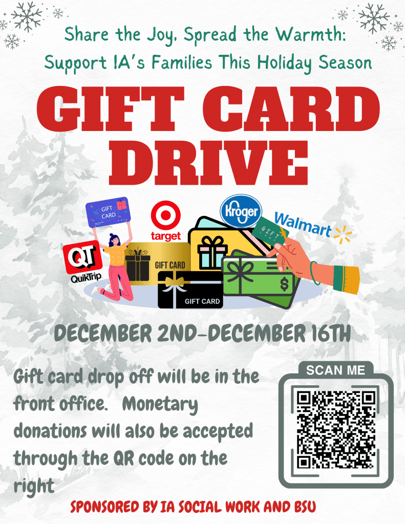 IA Social Work and BSU presents: Holiday Gift Card Drive