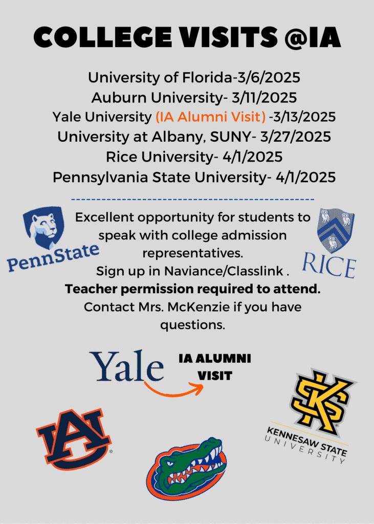 Jason Lampert, class of 2024, will visit us to share his experiences at Yale University. Jason will discuss how he navigated the college admissions process and his first year at Yale. The visit will be held on 3/13. Students are encouraged to sign up in Naviance/Classlink, where you will find this visit and other schools scheduled for this semester.