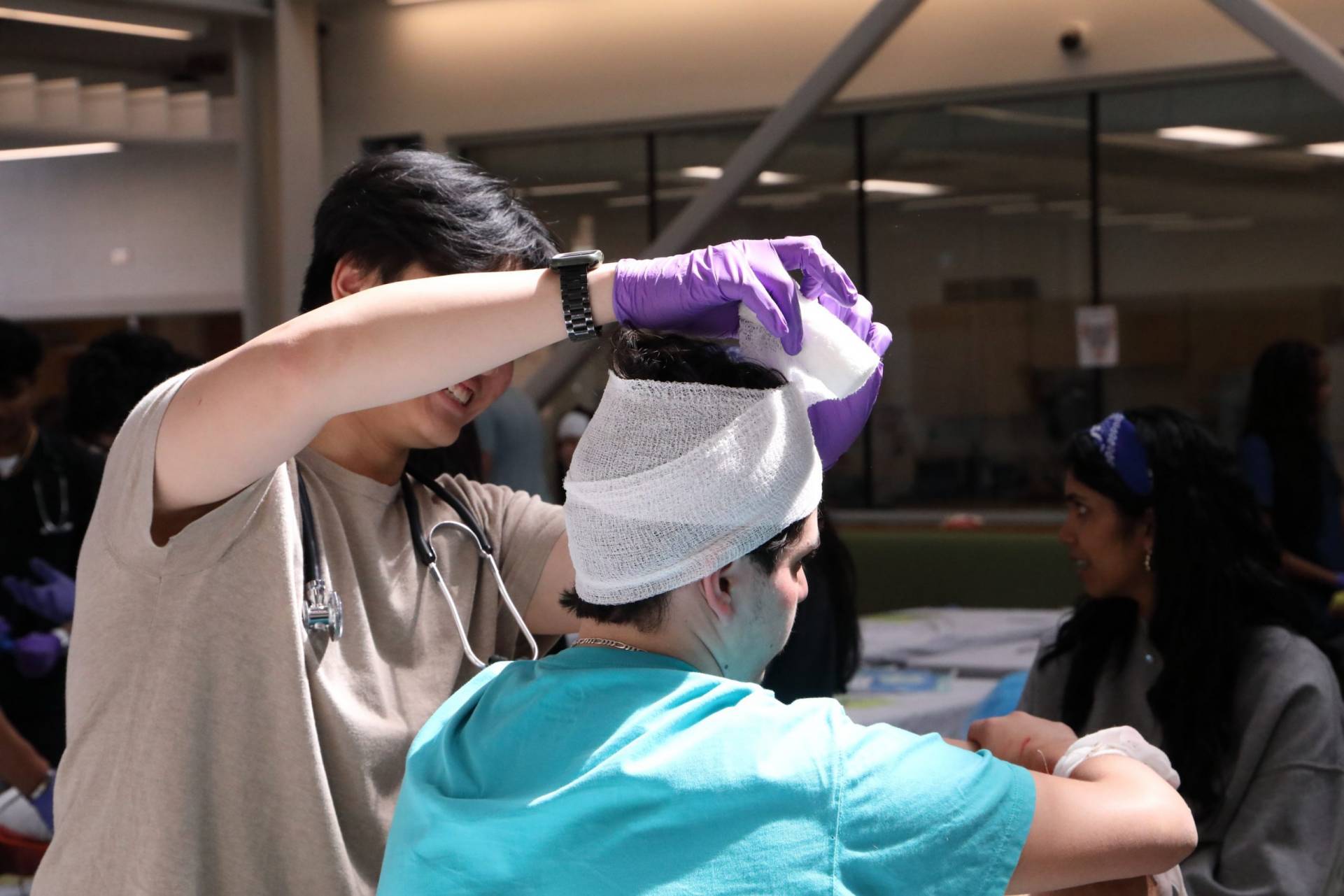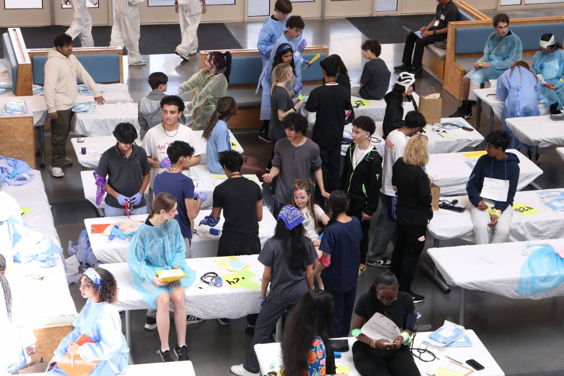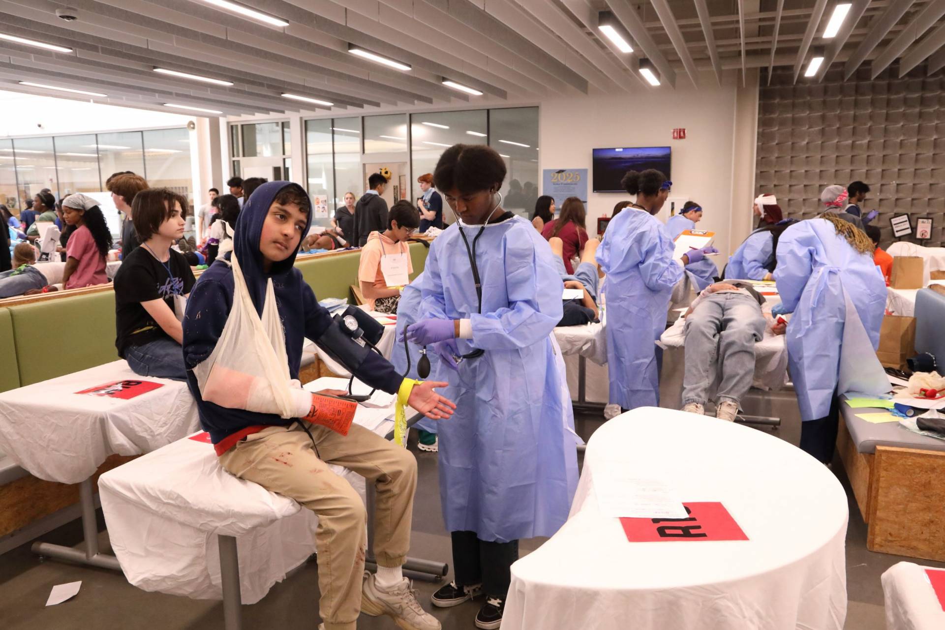 In the afternoon, the scenario unfolded. Students began on the field as patients and responders, quickly transitioning into IA General Hospital, a fully transformed section of the school. Receiving nurses triaged patients, while attending and specialty physicians worked up cases, ordering imaging, labs, medications, and consults to determine treatment plans. This year, a decontamination tent station was introduced for the first time, adding another layer of realism to the event.