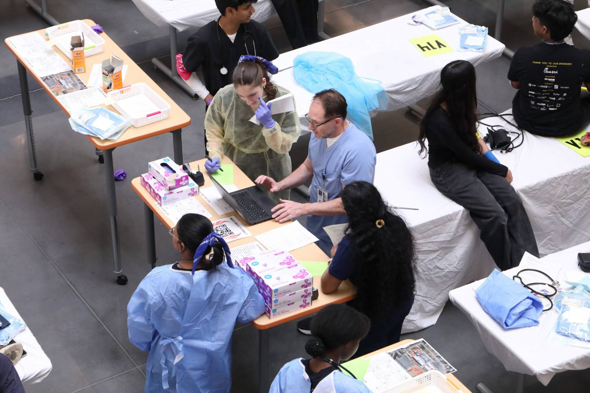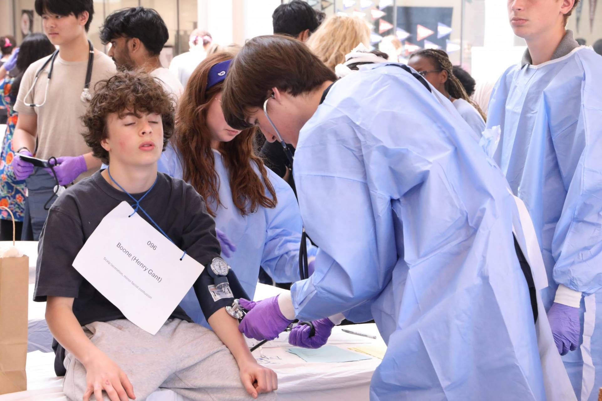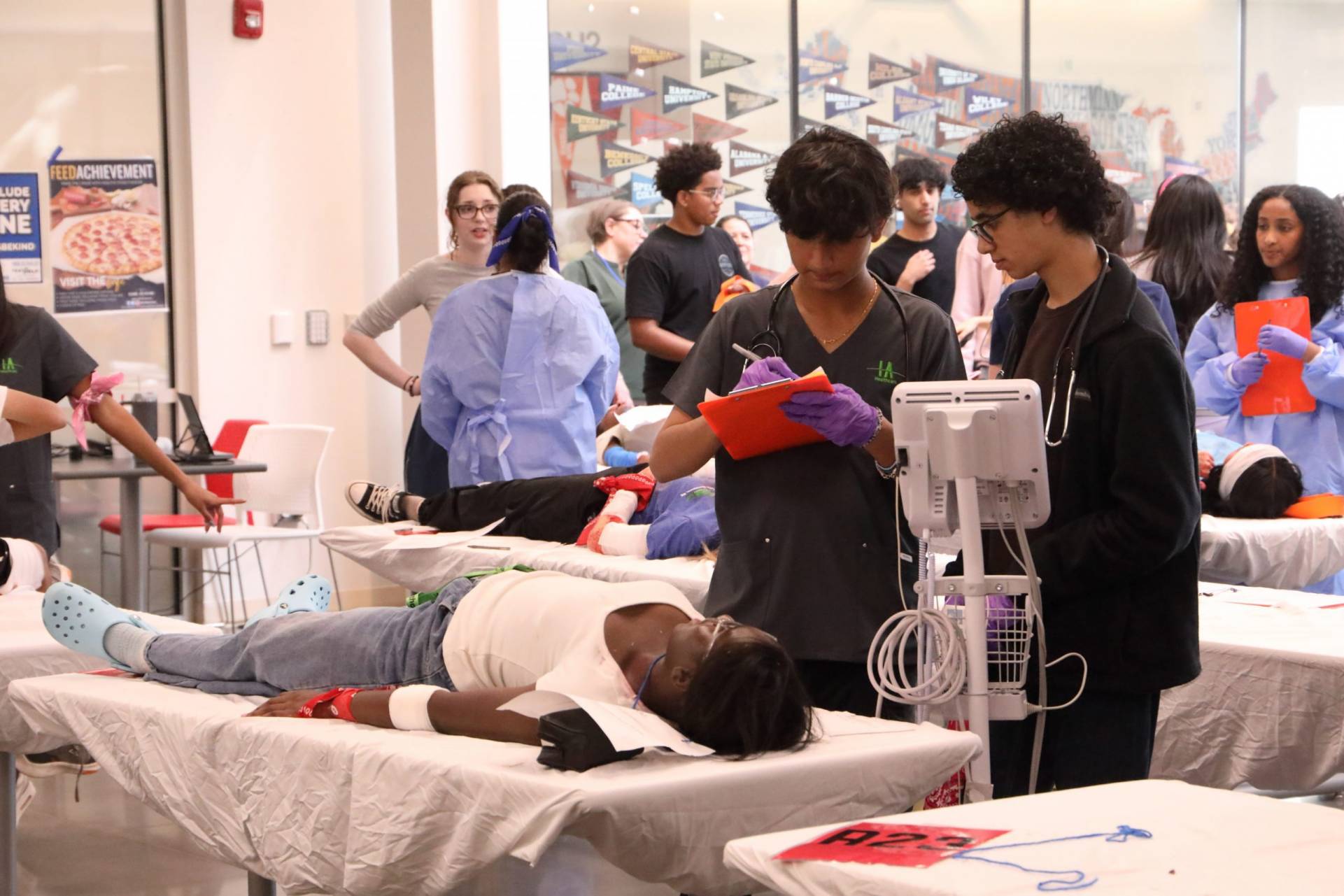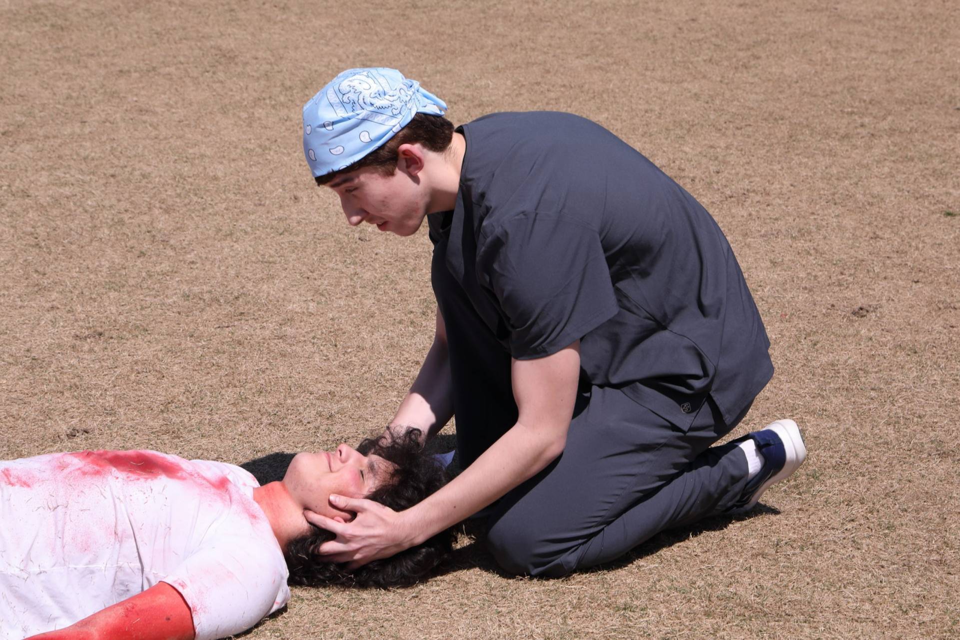 In the afternoon, the scenario unfolded. Students began on the field as patients and responders, quickly transitioning into IA General Hospital, a fully transformed section of the school. Receiving nurses triaged patients, while attending and specialty physicians worked up cases, ordering imaging, labs, medications, and consults to determine treatment plans. This year, a decontamination tent station was introduced for the first time, adding another layer of realism to the event.