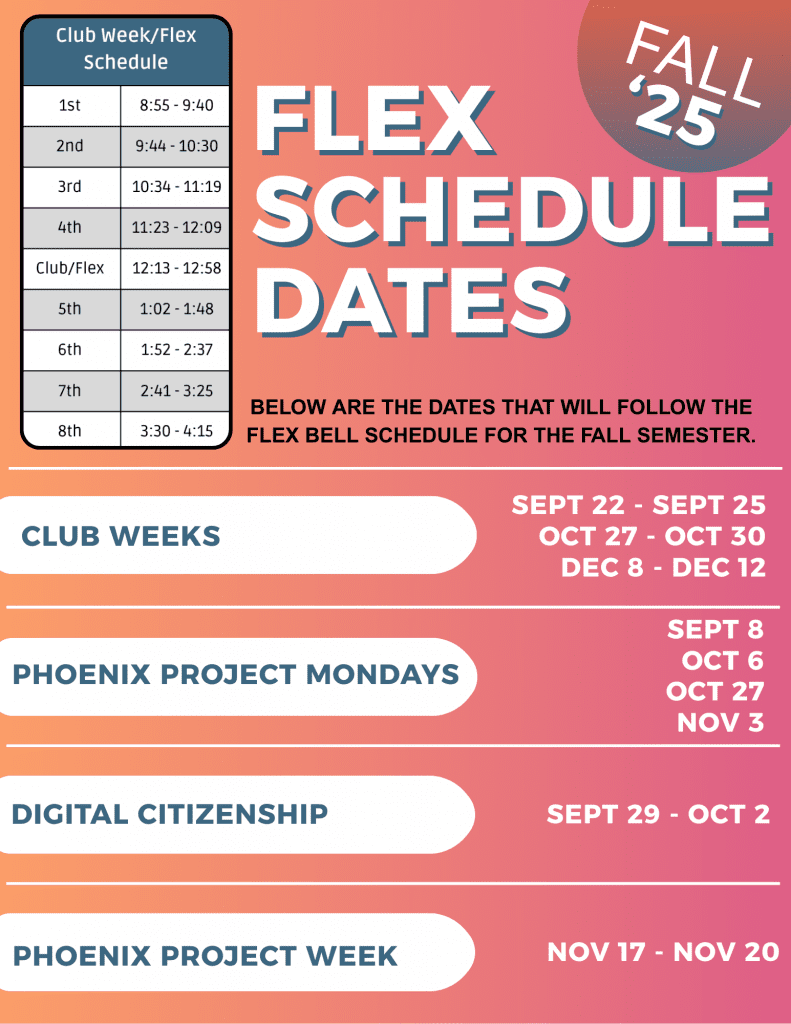 One of the unique things about IA is our ability to FLEX! To accommodate that we need to use alternate bell schedules at times. Below is a list of all of the dates that will be using our Flex Bell Schedule this Fall!