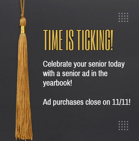 Time is running out to purchase a senior ad for the yearbook! Ads are a great way to celebrate your senior and surprise them with a little extra love when yearbooks come out at the end of the year. Ad sales close on 11/11, so act fast to make sure your ad is included. Visit jostens.com to design and submit your senior ad. You will need to create an account in order to design and purchase.