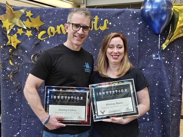 On Tuesday we celebrated our POTY Ms. Beem, our METI and TOTY Mr. Collins, ELA teacher.