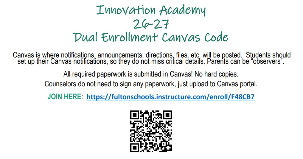Any student wanting to take Dual Enrollment classes for the upcoming school year must complete Fulton County Paperwork by March 31. Even if you are a CURRENT dual enrollment student, you must also follow these steps by the deadline or you will not be able to continue taking Dual Enrollment classes.