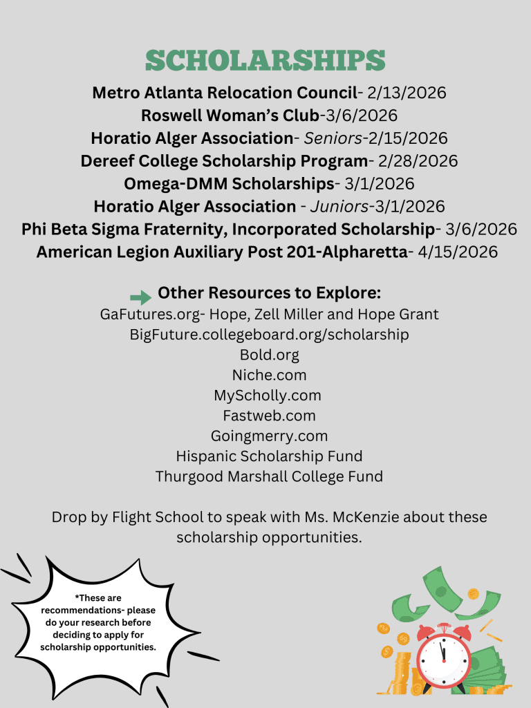 Reach out to Ms. McKenzie for more information about these scholarship opportunities. Drop in to Flight School to find out more- Apply today!