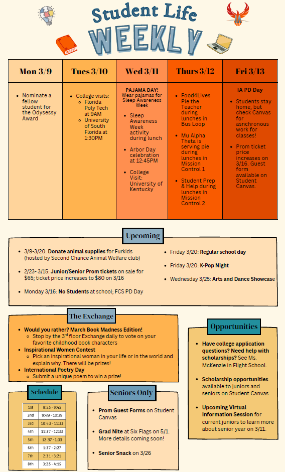 March 6, 2026 2026-03-06 12:00Student Life Weekly 3/9-3/13