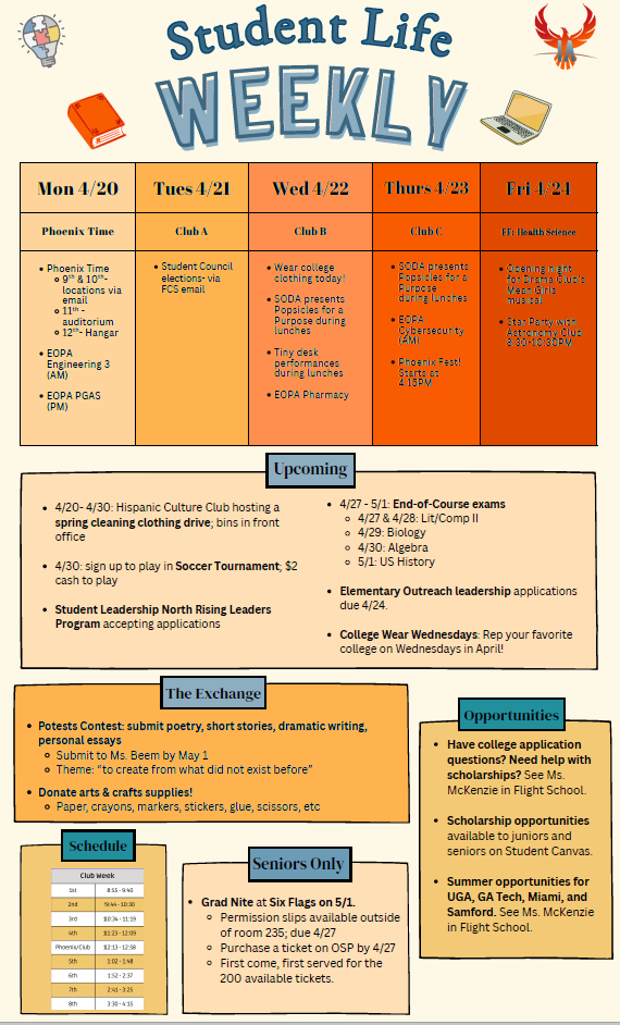 Student Life Weekly 4/20-4/24